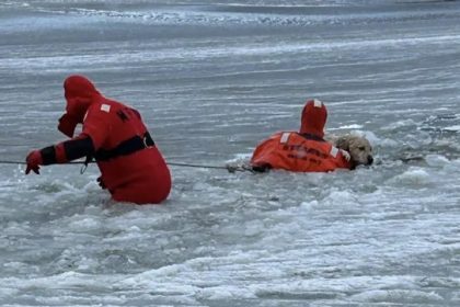 برف سےجمی جھیل میں گرنےوالےگولڈن ریٹریور کو فائر فائٹرز نےکر بچا لیا