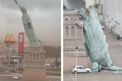خراب موسم اور شدید ہواؤں کے باعث مجسمۂ آزادی گر کر مکمل طور پر تباہ ہو گیا