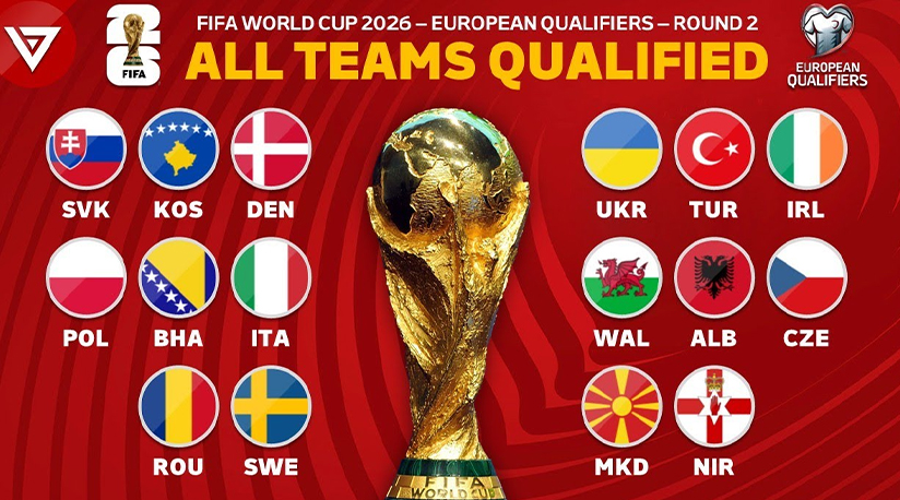 ورلڈ کپ کی چار باقی ماندہ نشستیں یورپ سے یوئیفا کے 16 ٹیموں کے پلے آف کے ذریعے پر کی جائیں گی۔ورلڈ کپ کا ڈرا پانچ دسمبر کو واشنگٹن ڈی سی میں ہوگا۔