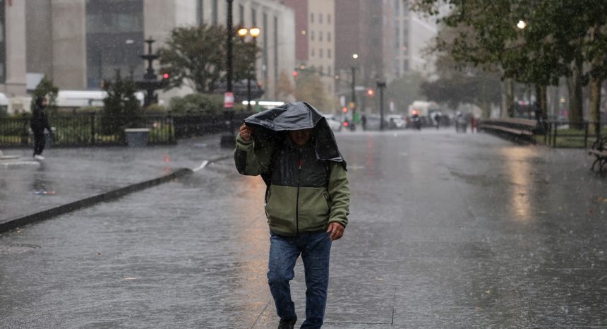 نیو یارک: جمعہ کی صبح نیو یارک شہر میں تیز طوفانی بارش اور 60 میل فی گھنٹہ کی رفتار تک کے تیز ہواؤں نے تباہی مچا دی۔