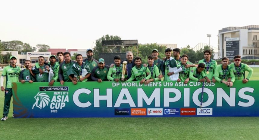 دبئی: پاکستان نے 2025 اے سی سی انڈر-19 ایشیا کپ میں بھارت کے خلاف شاندار فتح حاصل کرتے ہوئے ٹائٹل اپنے نام کرلیا۔ دبئی کے آئی سی سی اکیڈمی میں ہونے والے فائنل میں پاکستان نے اپنی حریف ٹیم کو یک طرفہ مقابلے میں شکست دے کر ٹورنامنٹ میں اپنی بالادستی ثابت کردی۔
