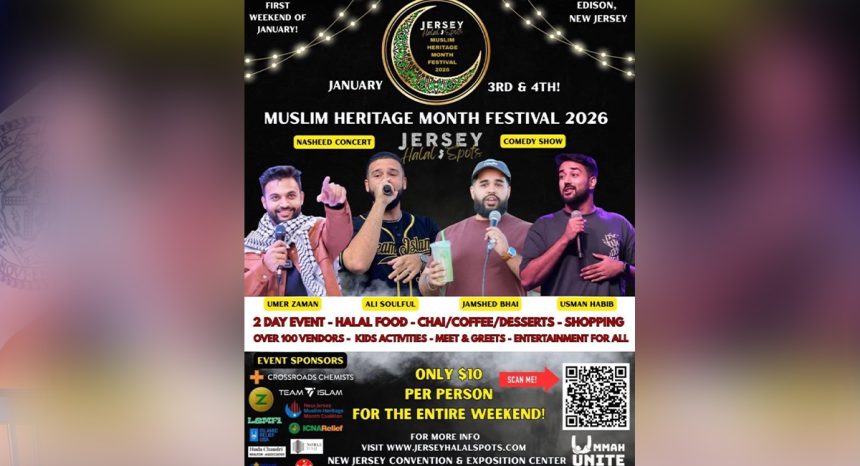 نیوجرسی(ویب ڈیسک): نیو جرسی کے شہر ایڈیسن میں مسلم کمیونٹی کی ثقافت، کھانوں اور تفریح کو اجاگر کرنے کے لیے مسلم ہیریٹیج منتھ فیسٹیول 2026 کا انعقاد کیا جا رہا ہے۔ یہ دو روزہ میلہ جنوری کے پہلے ویک اینڈ، 3 اور 4 جنوری کو منعقد ہوگا۔