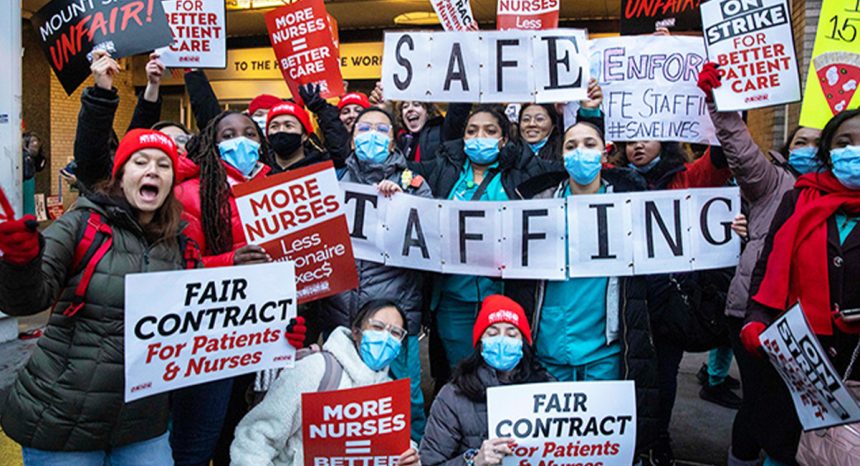 نیویارک: نیویارک شہر کے مختلف ہسپتالوں میں کام کرنے والی تقریباً 16,000 نرسوں نے تنخواہوں میں اضافے اور صحت کی سہولیات کے حصول کے لیے ہڑتال پر جانے کی تیاری مکمل کر لی ہے۔ نرسوں کی یونین اور ہسپتال انتظامیہ کے درمیان مذاکرات میں تعطل کے بعد پیر سے کام چھوڑنے کا اعلان کیا گیا ہے۔