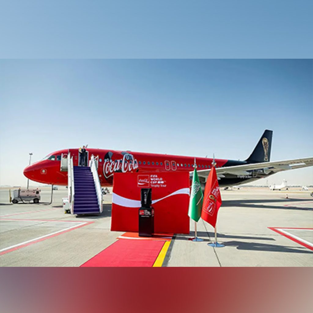 ٹرافی کو کنگ خالد انٹرنیشنل ایئرپورٹ پر ایک نجی طیارے کے ذریعے لایا گیا، جہاں اطالوی ورلڈ کپ فاتح الاسینڈرو ڈیل پییرو نے اسے ٹارماک پر عوام کے سامنے پیش کیا۔ ریاض اسٹاپ، فیفا کی کوکا کولا کے تعاون سے ترتیب دی گئی عالمی ٹرافی ٹور کے 75 شیڈول شدہ مظاہروں میں پہلا ہے، جو 30 ممالک میں منعقد ہوں گے۔